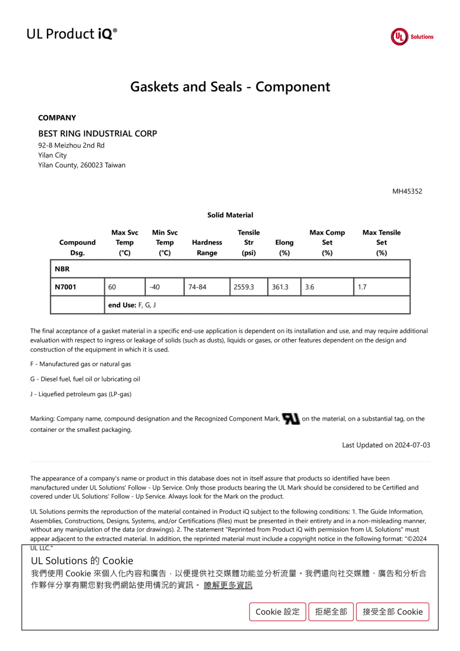 Gasket and seal standard certification, Best Ring has the most advanced UL157 certification and provides certified raw materials.