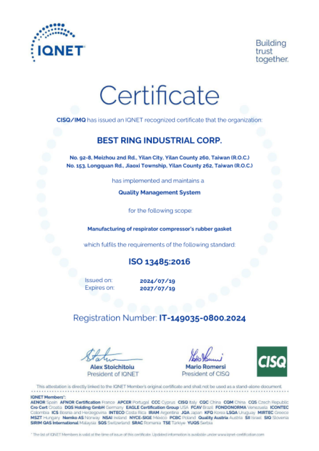 Quality Management SystemQMS quality management system certification, the purpose of Best Ring's international standardization is to be customer-oriented and continuously adjust and adapt to meet the growing needs of customers. -